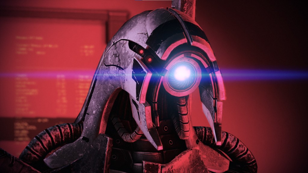 Mass Effect gives the Geth a typical sci-fi origin story; created by an alien race called the Quarians, the Geth eventually rose up and took control of their homeworld, sending their creators into exile and cutting themselves off from the galaxy’s other organic races. This much is explained to the player character in Mass Effect 1, wherein the nameless, wordless Geth serve as foot soldiers for the primary antagonist, an alien named Saren. However, the second game throws a wrench into how the player conceives of the Geth, which is where things really get interesting. In Mass Effect 2, the player’s Commander Shepard encounters what appears to be an individual Geth capable of speech. When the Geth has trouble telling Shepard its name, the following exchange ensues: