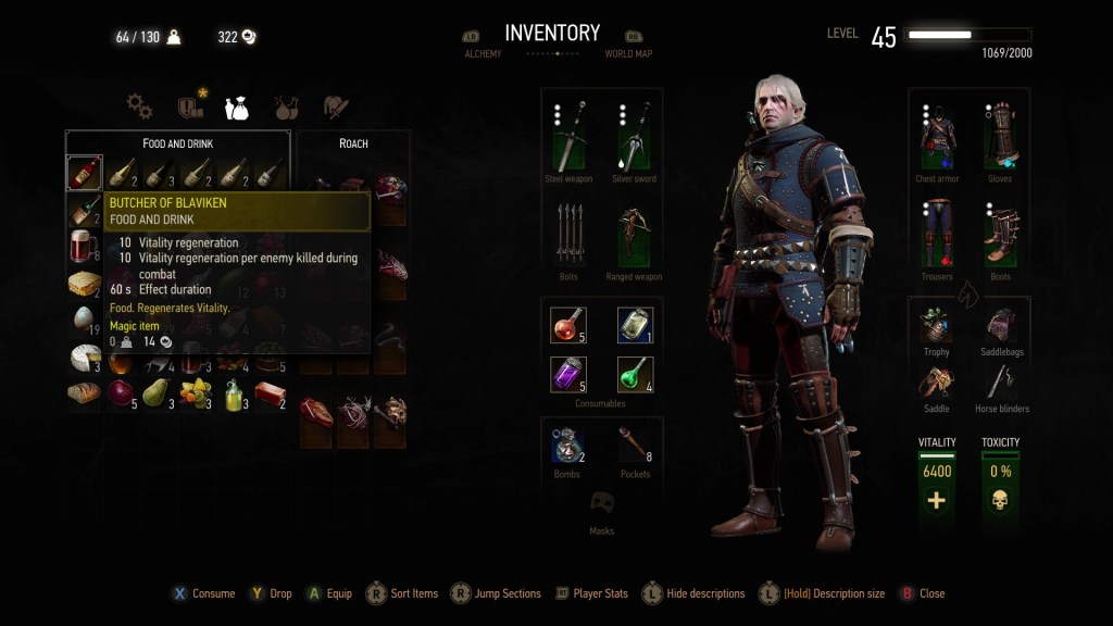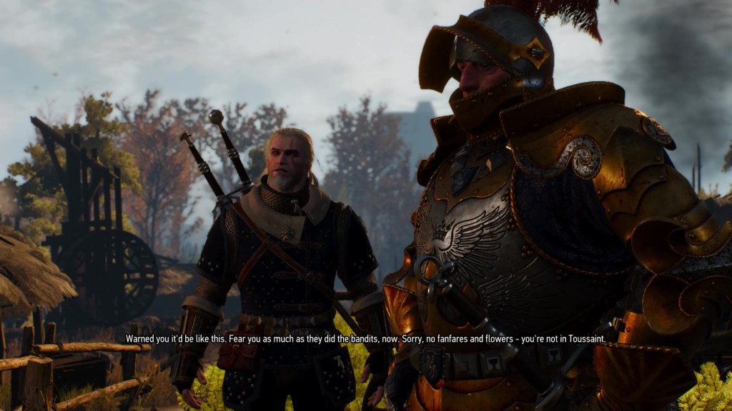 If the player achieves the best outcome for the “Wine Wars” sidequest in TW3, Geralt can name a vintage after himself or one of his many monikers. The options are Geralt of Rivia, White Wolf, and… Butcher of Blaviken. I must admit, if I saw a bottle labelled “Butcher of Blaviken” in the liquor store, I’d pick it up immediately. Yet I don’t think it’s an option the Geralt of the books would ever choose—and you know what? That’s okay. The Geralt we play in the video games is wiser and more good-humoured than his book counterpart. This is especially true in TW3, which makes sense given how that game focuses on Geralt’s growth as a father figure after a long separation from Ciri and new experiences in TWI & TW2. That he is different is something players can see not only in the choices they make but also in how Geralt responds to those choices after he’s made them. While I think this version of Geralt is somewhat less complex than the original, playing this simpler role can be comforting. This Geralt is great for us players who face the harsh world of the Continent and its many dilemmas, which are at least as interesting as the ones Geralt must deal with in the books, if not more so.